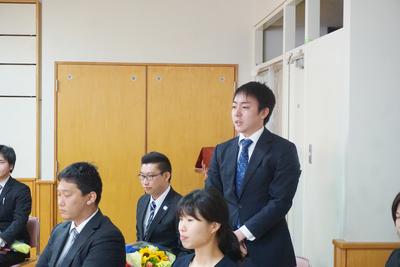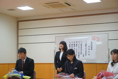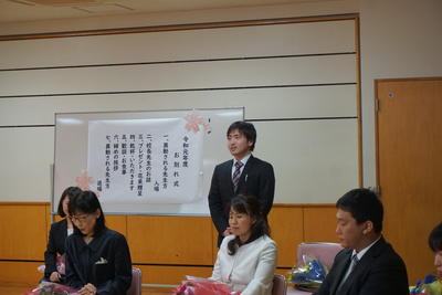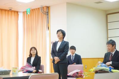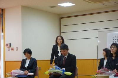転退職される先生方へ花束とプレゼントを贈呈し、御挨拶をいただきました。