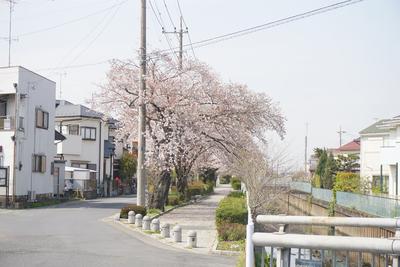 大場橋側から見たみどり住宅方面の桜並木。