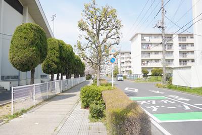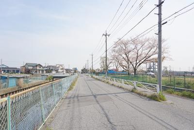 右奥には、元沼端小(現:かすかべ環境防災研究センター)が見える道です。