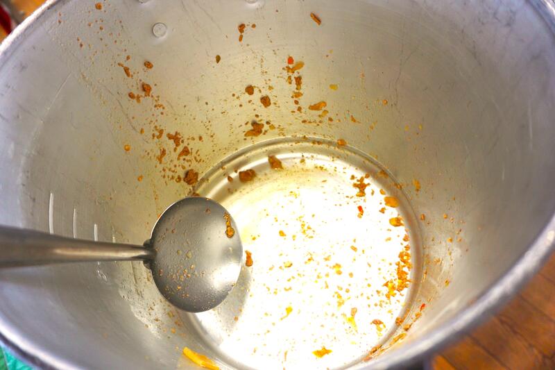 大食缶を空けた途端に湯気が立ち上り、いい匂い!