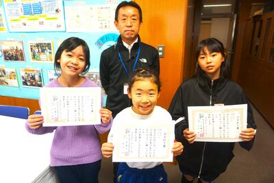 本日の業間休みには、先月の挨拶チャレンジで各学級でポイント1位だった児童に、ひまわり賞が授与されました。