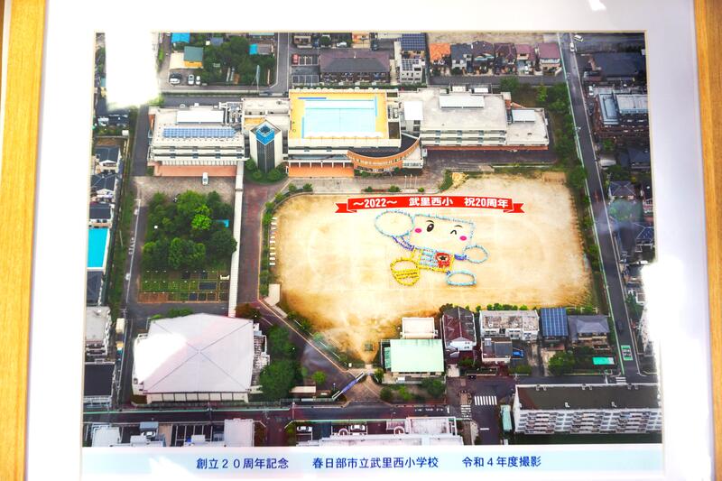 大きな額に入れられた写真を見ると、武里西小の20年のあゆみを感じます。