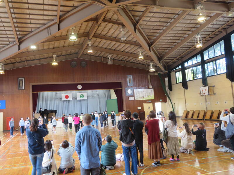 3時間目終了後、体育館にて5年2組の合唱を披露しました。先日行われた市内音楽会では、保護者の皆様を招待することができなかったので、改めて場を設けたものです。子供たちの素敵な歌声を直接聴いていただくことができました。