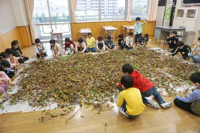 今日は、ものの名前をいかして、お店屋さんごっこの準備をしました。