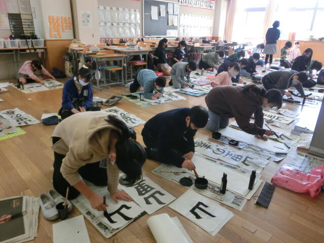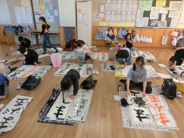 初めて太い筆で挑戦した3年生。練習する度に上手になっていく様子が見られました。