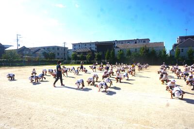 運動委員が前に出て、1年生などのお手本として活躍しました。