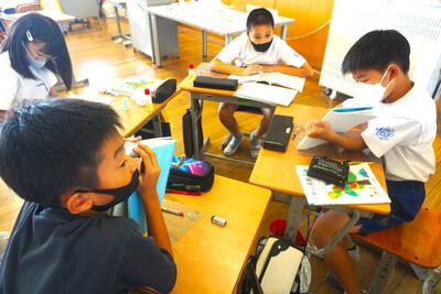 オンラインで学習を行う学級や子供たちも、体調を考慮しながら熱心に学習しています。