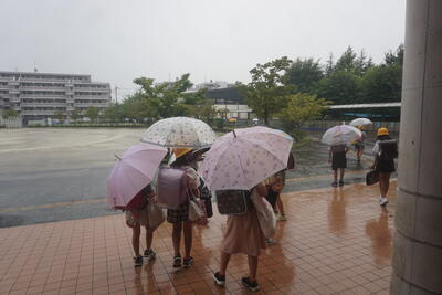 下校の際も雨に降られましたが、子供たちも夏から秋へと季節の変わり目を感じながらの下校となりました。