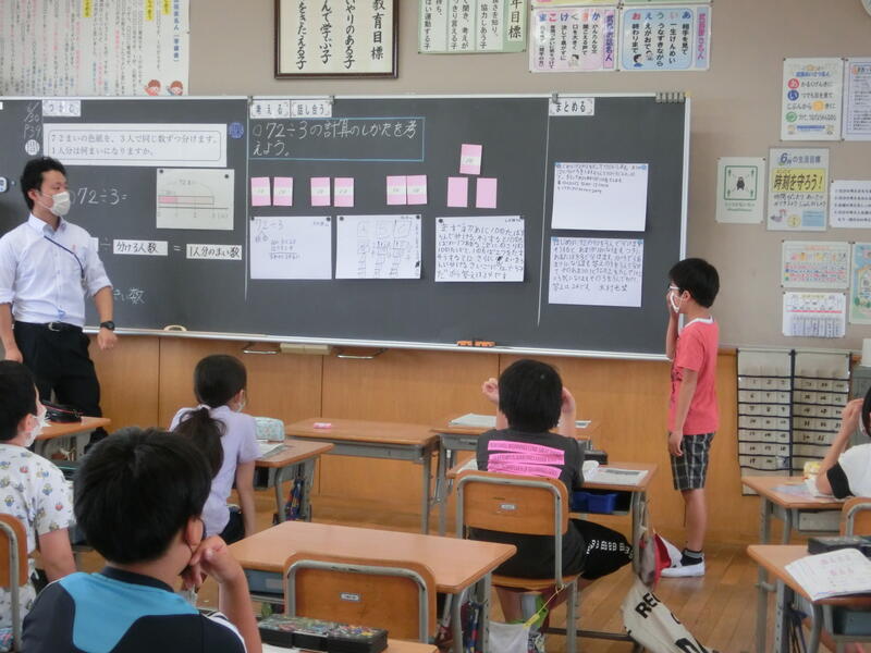 3年生のあるクラスでは、初任者指導の先生が授業を見守る中、外国語の授業が行われていました。