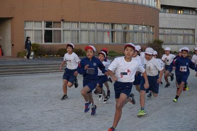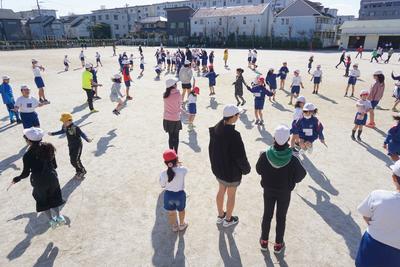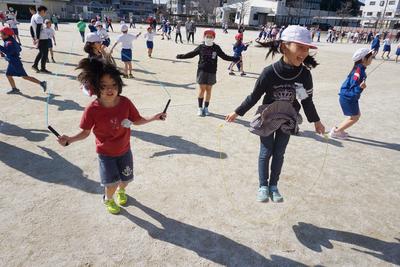 校庭の朝礼台前は、縄跳びをする子供たちで賑わっていました。