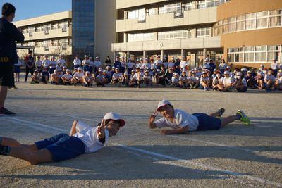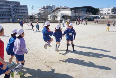 こちらは、長縄。リズムと跳び方に気をつけながら気持ちを合わせて跳んでいます。