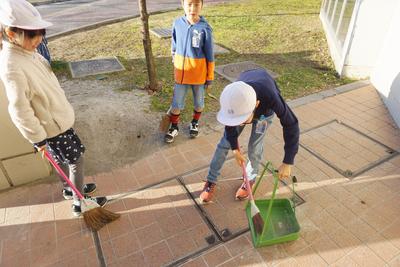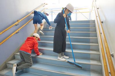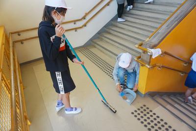 そんな朝、子供たちが各場所でボランティア活動の掃除に励んでいます。