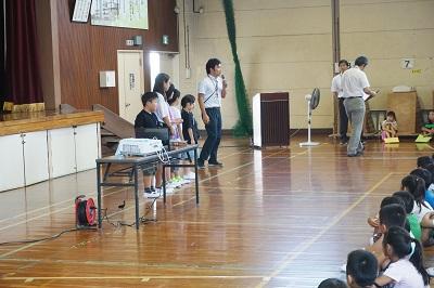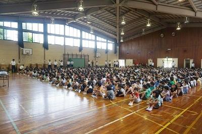 校長先生のお話では、まず、「夏休みに心に残ったこと」として、校長先生の旅行の話、5年生との林間学校の話、合唱団スマイリーのコンクール出場の話についての紹介がありました。
