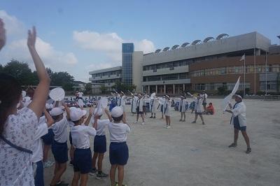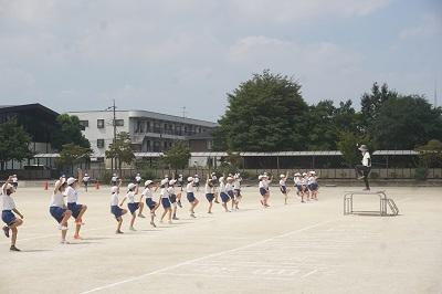 全体や学年での練習などでは、適宜、こまめな水分補給を行ったり、気温が急上昇した場合、校庭の午後の練習を中止にしたりするなどの対処を行っています。