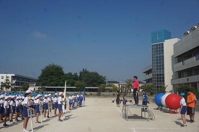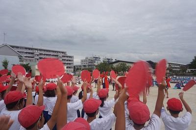 運動会までまだまだ猛暑が続く予報が出ています。運動会の練習に関しては、適宜、水分補給をするための休憩時間を設け、体調不良になった際の子供たち自身の対処法などを確認しています。また、練習中の怪我を未然に防げるよう安全性の確認や子供たちへの声掛けもしています。
