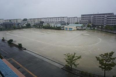 2 朝の状況では、電線が切れたり、倒木や冠水の場所も考えられます。児童の安全を第一に考えて、登校させてください。遅れても、遅刻としません。
