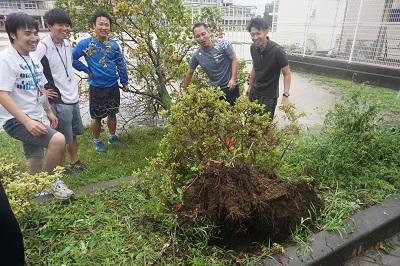 正門横の学童近くの木が根元から倒木しており、先生たちで運び出しました。