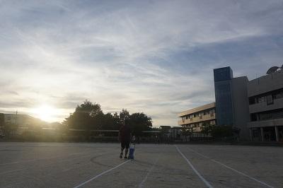 放課後、台風一過の黄昏時の中、運動会で行われる「伝統のバトン」に出場する先生チームの選考が行われました。
