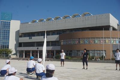 火曜日の朝、全体練習前に新しく赴任された先生と教育実習生が子供たちに紹介されました。