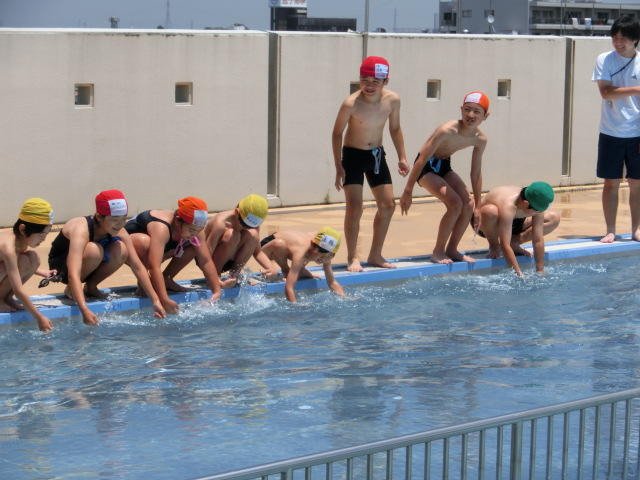 気温が上昇し、水温も上昇したので、今年初めての水泳学習が行われていました。