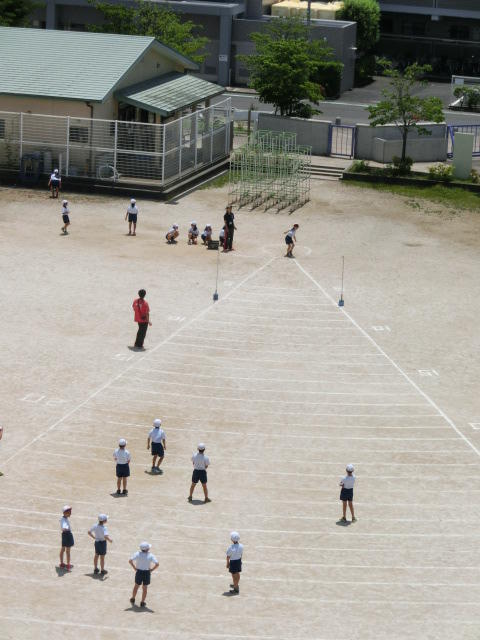 前回のブログで掲載されていた3年生の体力テスト。同じ頃の地上からの一枚。