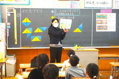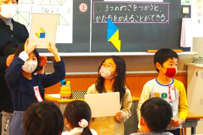 また、1年生の実態に合わせて、楽しく図形の操作活動に取り組ませていたことや、5年生でも実態に合わせて、目の前の子供の反応にしっかりと対応しながら授業がなされていたというお言葉ももらいました。