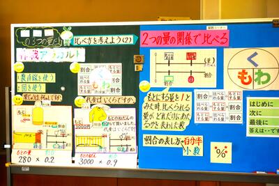 今まで学習してきた少数の倍の比較、単位量あたりの大きさなどを踏まえ、今後の比の学習にも繋がっていきます。