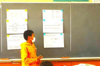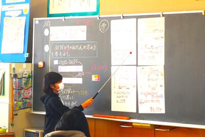 先生の補足を付け加えつつ、全体でしっかりと考えや求め方を共有しました。