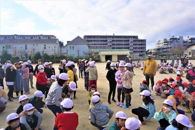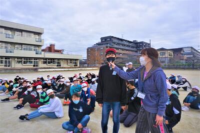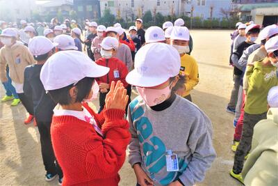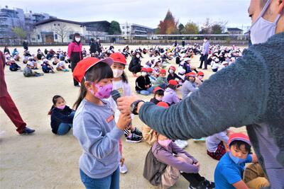 ウォーミングアップに鬼ごっこ。6年生を捕まえろ!