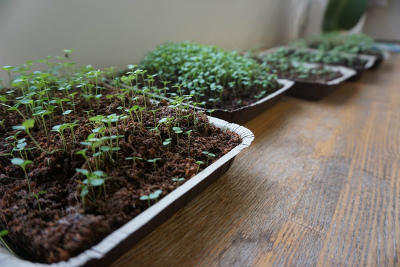 職員室のビオラもひと夏でずいぶん育ってきました。