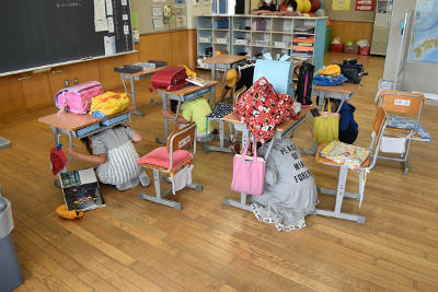 前日の雨のため、室内での開催となりましたが、関東地方に大地震が発生したという設定での訓練に際し、子供たちも概ね落ち着いて行動することができたようです。