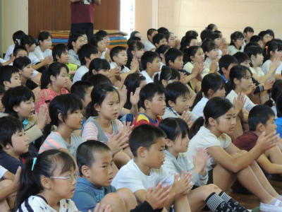 今日の5時間目に、学童はみがき大会に本校も参加しました。ライオンの提供でライブ配信の番組に合わせて歯磨きのこつを学びました。