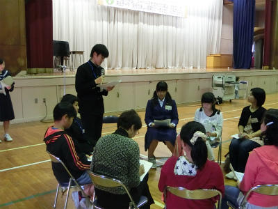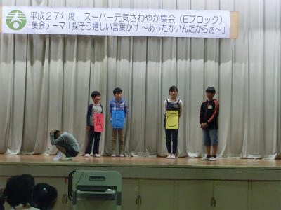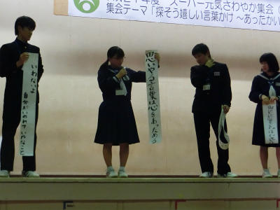 今回のテーマは「探そう嬉しい言葉かけ~あったかいんだからぁ~」です。みんなで劇を見たあと、中学生のみなさんの進行で話し合い活動を行いました。その後、話し合いから学んだことを標語に表しました。最後には全体合唱で「あったかいんだからぁ」を歌いました。