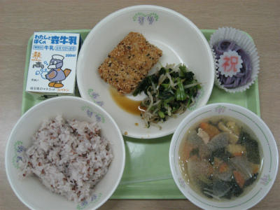 今日の給食は、春日部市が旧庄和町と合併して10年になる記念給食でした。