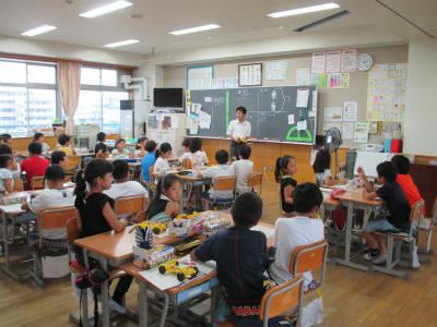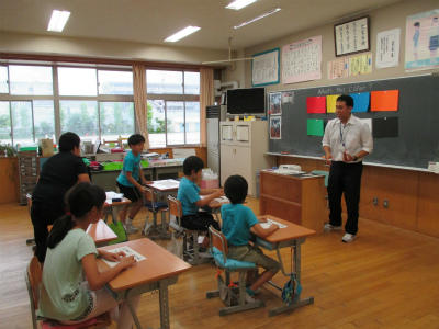 | 今日は、1年生のスポーツテスト「シャトルラン」でした。6年生のお兄さん・お姉さんが一人一人についてくれて、見てくれました。学年で一番の記録を出した男の子には、陸上大会で1位だった6年生が伴走してくれました。みんな、頑張りました。 | |