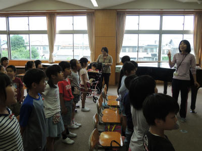 今日は、宮代特別支援学校の2年生のお友達が、本校2年2組の音楽の授業に参加しました。音楽に合わせて、体を動かしリズムを一緒にとりました。来週の音楽朝会には、3年生の2名のお友達と一緒に参加します。