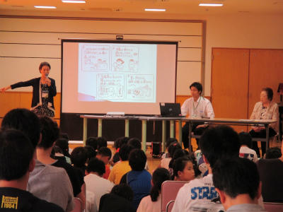 6年生の家庭科の授業に、プロの料理人「トキオのマスター」がゲストティチャーとして来て下さいました。野菜いためのコツを教えて頂きました。初めは自分たちだけで作ってみて、その後マスターのいため方を見せてもらいました。同じ材料なのに、見た目も味も違っていました。