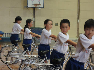 6月28日(日)の熊谷ドームで行われる埼玉県自転車大会に出場するために6年生の5名が練習をしています。警察・市役所の方に指導をいただいています。少しずつ上手になっています。