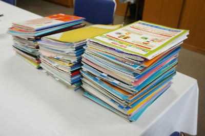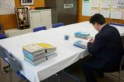 最終日に訪れた子供の自主学習ノートに対して、校長先生が一人一人のノートを丁寧にチェックし、その頑張りをコメントして、更に賞状の名前を手書きすること、なんと、110人分!!
