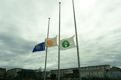 武里西小でも、東日本大震災によって犠牲となった尊い多くの犠牲者を弔うために、校庭の掲揚塔に半旗を掲げ、各学級において、東日本大震災当時の話や今後の大きな地震、災害に備えるための安全対策についての話などを行いました。
