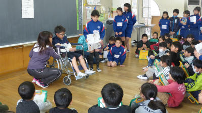 3年生を招待し、福祉などについてTタイム(総合)の時間でまとめたことを発表しました。