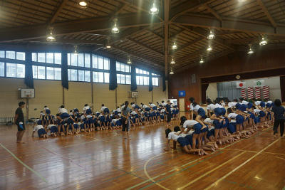 午前中は、雨により校庭が使えず、体育館やオープンスペースでの練習となりました。