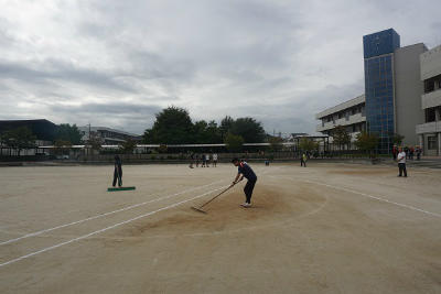 放課後は、先生たちで徒競走のライン引きや校庭整備などを行いました。