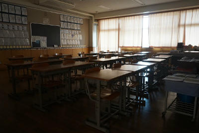 夏の終わり、午前中には中野中の吹奏楽の音色が遠くに聴こえる静かな校舎です。