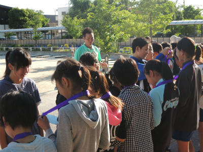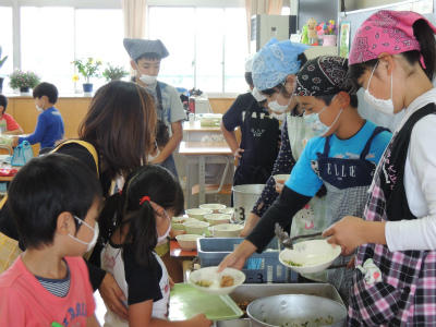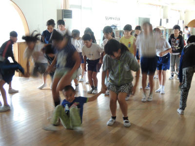 今日は今年2回目のたけにしタイムを行いました。1年から6年までのメンバーが一つのチームになり、各教室で給食を食べました。昼休みにには、23日に行われる「たけにしスポーツ集会」のために各チームで練習をしました。6年生を中心にどんどんみんなが仲良くなってきました。