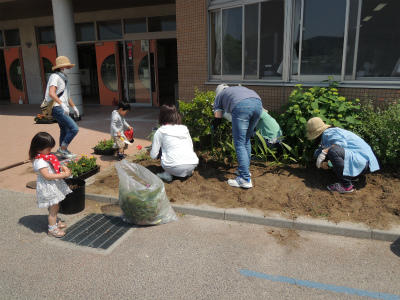 暑い中、PTAのガーデニングボランティアの方が来て下さって、校庭の花壇のお花を植え替えてくださいました。かわいいベコニアの花を大事にします。