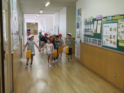 生活科の学習の一環として、1,2年生が学校探検を行いました。