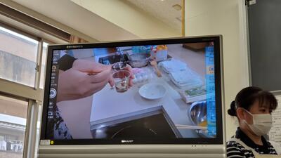 まず、家庭科担当と栄養教諭によるデモンストレーションです。