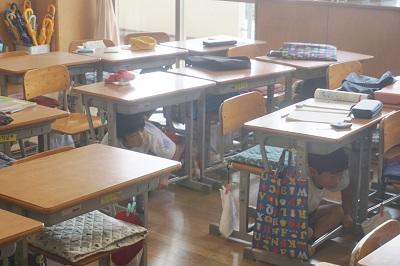 訓練を行う日時は知らされてなかったので、突然の緊急地震速報に驚きながらも、身を机の下に隠したり、広い場所に身を屈めたりしながら素早く行動することができました。