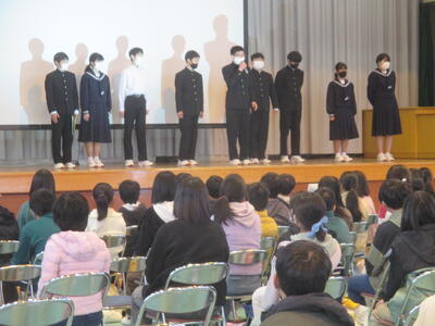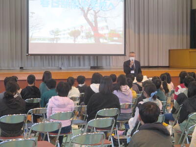 校長先生や先輩になる生徒の皆さんから楽しい中学校生活についてお話しがありました。